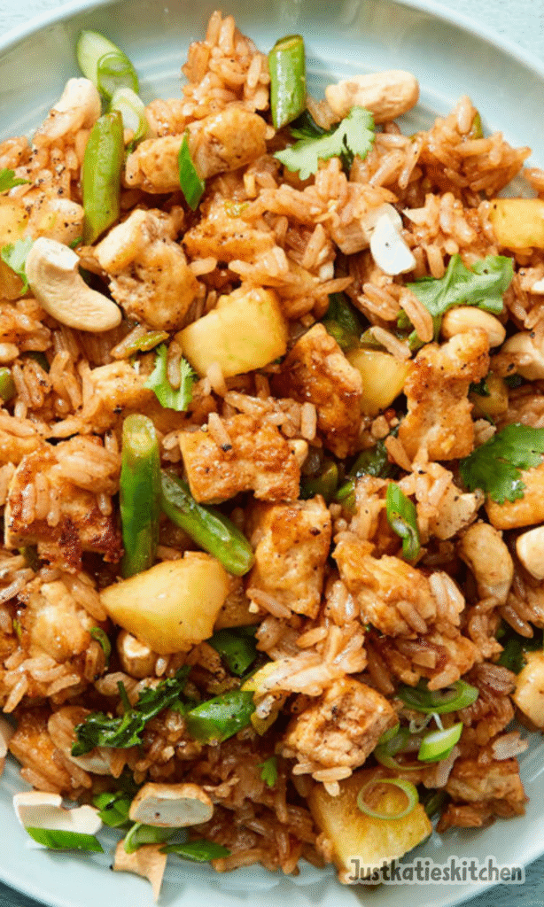 This comforting one-pan Chicken Pineapple and Rice features tender chicken, sweet pineapple chunks, and crisp vegetables simmered in a savory-sweet gingery sauce. It’s a complete, flavorful weeknight meal that comes together in under 30 minutes and pairs perfectly with fluffy steamed rice.