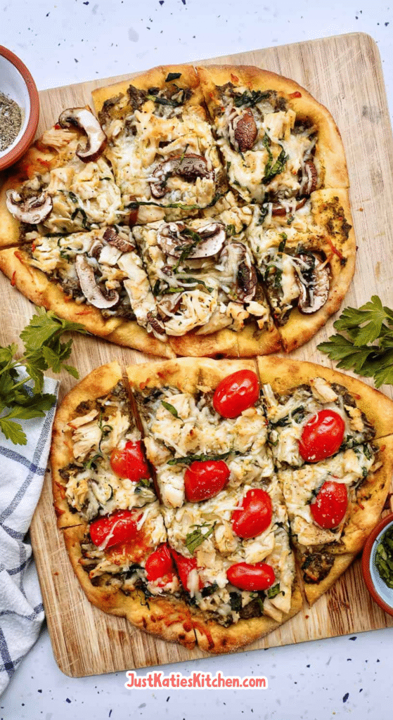 Top it with tender chicken and bubbling cheese, and you’ve moved far beyond a simple pizza. This is a flatbread with soul.